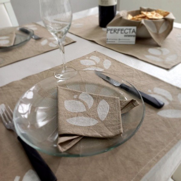 Este set consta de 8 individuales simples (tipo mantelito) + 8 servilletitas + un paño para usos múltiples (centro de mesa, para cubrir la panera, paño de cocina o lo que vos quieras!).